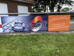 Neue Bandenwerbung am Sportplatz angebracht