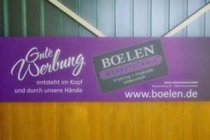 In den vergangenen Tagen wurden in unserer Tennishalle (Muttacker 1) eine neue Bande unseres Werbepartners „Boelen Werbetechnik“ angebracht. Wir begrüßen unseren neuen Werbepartner herzlich und möchten uns ebenso herzlich bei allen anderen langjährigen Sponsoren bedanken.