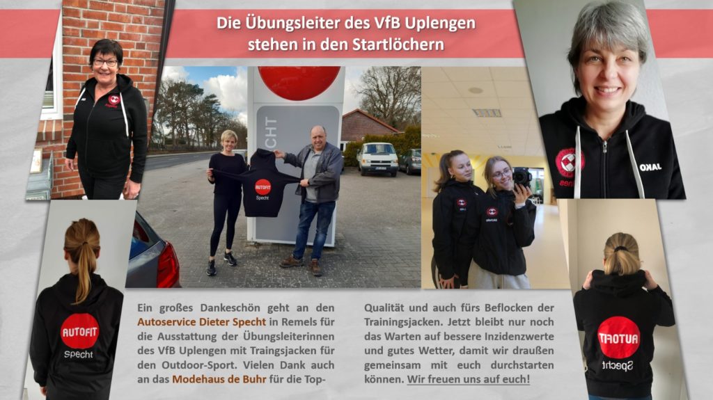 Ein großes Dankeschön geht an den Autoservice Dieter Specht in Remels für die Ausstattung der Übungsleiter*innen des VfB Uplengen mit Traingsjacken für den Outdoor-Sport.