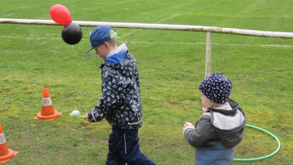 Während unseres Kinder-Osterfestes konnten die kleinen Besucher auf vielfache Weise ihre Geschicklichkeit und ihren Spürsinn unter Beweis stellen. Bei der Ostereiersuche konnte die eine oder andere Tüte gut mit Leckereien gefüllt werden. Die richtige Balance zu halten war beim Eierlauf eine Herausforderung, die es zu meistern galt. Besonders viel Spaß hatten die Kinder auch beim Stockbrot grillen. Auch die ganz Kleinen bewiesen ihre Geschicklichkeit beim Dosenwerfen. Kreativität war sowohl beim Bemalen von Ostereiern als auch beim bemalt werden gefragt. Wir wären nicht der Verein für Ballspiele, wenn nicht auch Gelegenheiten zum Kicken genutzt worden wären.